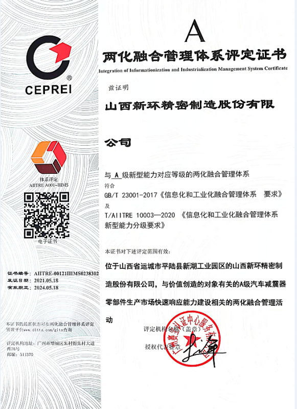 • 兩化融合證書(shū)